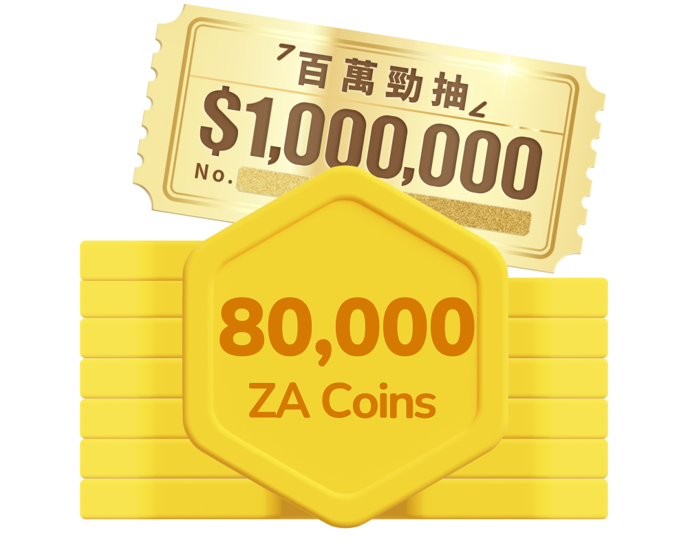 賺最高 80,000 ZA Coins 和 1 張百萬勁抽券