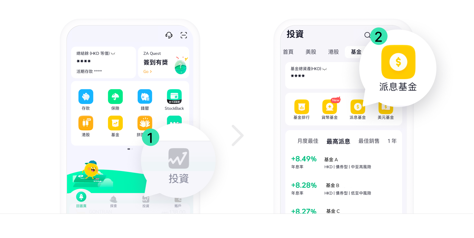 想進一步了解市場上有邊啲派息基金、表現如何?現在就打開 ZA Bank App「派息基金」列表,按你的需求篩選,找到適合自己的選擇。