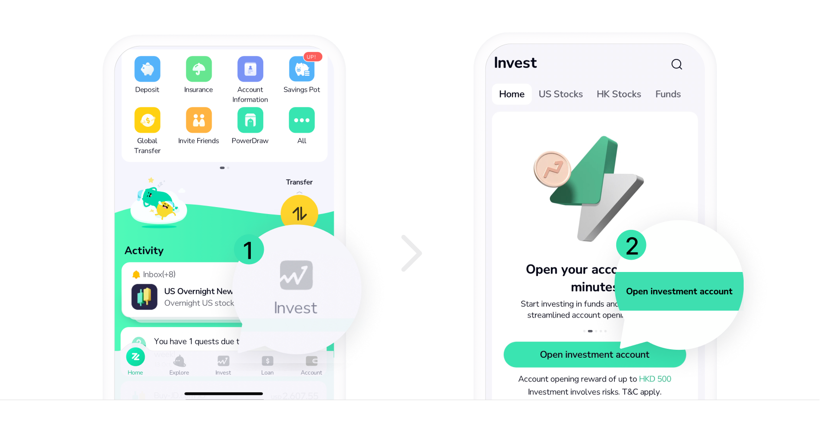 Service activation in as fast as 3 minutes, get up to HKD 1,500 cash rewards³ in total when you buy stocks💰.