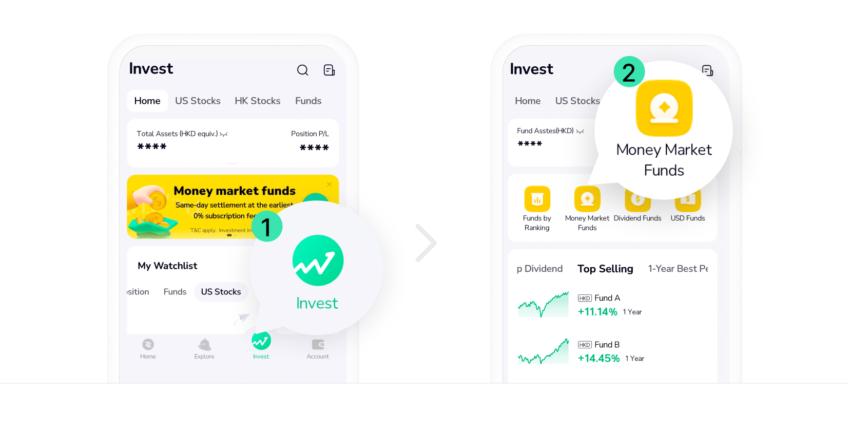 ZA Bank offers a range of money market funds with up to 4.51%1 1-year return, along with 3 key features below: