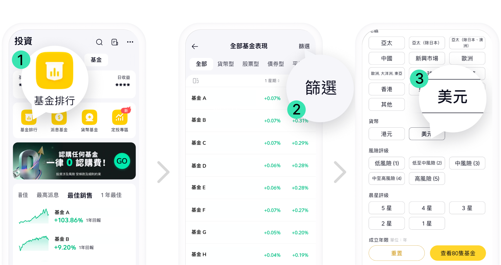 同時,App 內設有多個基金榜單供你參考,助你從不同角度更快找到合適的基金選擇。