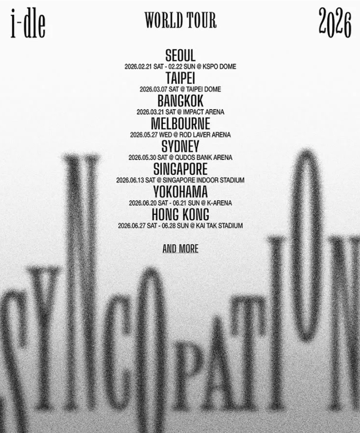 🎤看點:i-dle 由小娟、薇娟、Minnie、雨琦與舒華五位成員組成,以鮮明個性與強烈舞台魅力在全球 K-pop 女團中形成獨特辨識度。歷經三次世巡後,2026 年迎來團體第四次《Syncopation》世界巡迴演唱會。